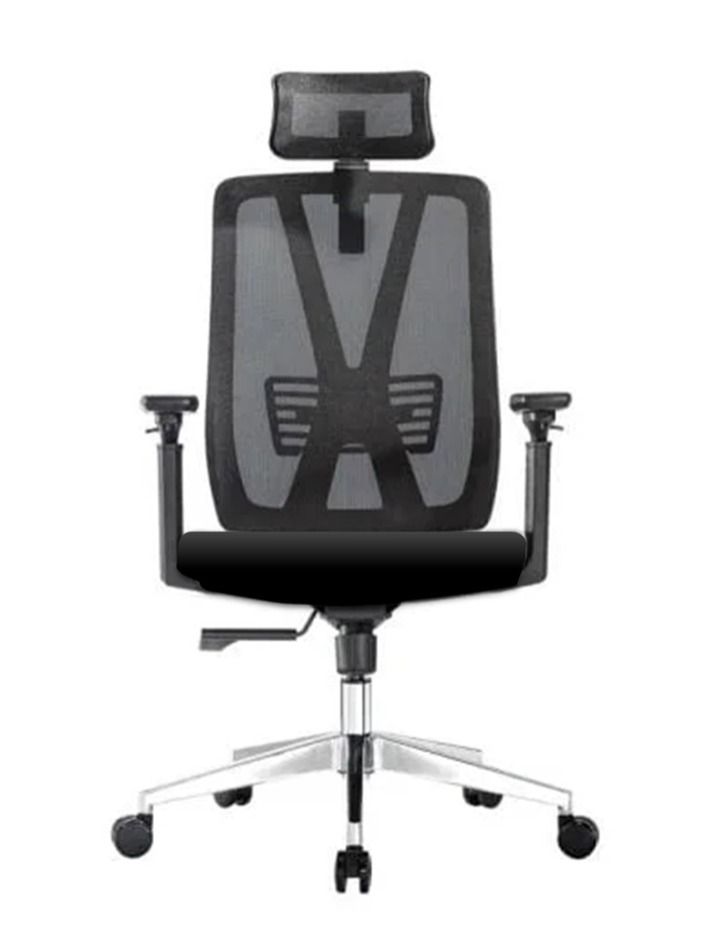 - مسند الرأس: يحتوي الكرسي على مسند رأس منفصل ومبطن، مصنوع من الشبكة، وقابل للتعديل (على الأرجح للأعلى والأسفل وللأمام والخلف)، مما يوفر دعمًا مثاليًا للرقبة والرأس ويساعد في الحفاظ على وضعية جلوس صحيحة ومريحة، خاصة أثناء التركيز على الشاشة.