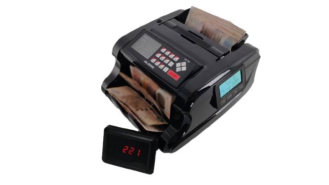 *A cash counting machine with LCD screen.