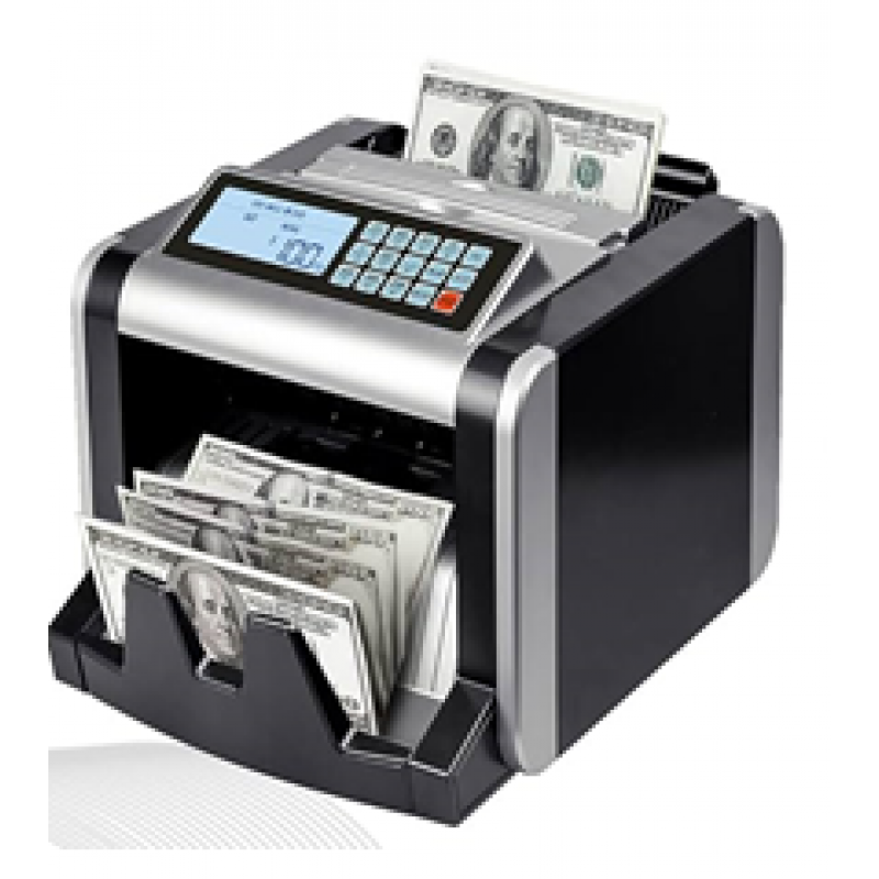 *A cash counting machine with LCD screen.